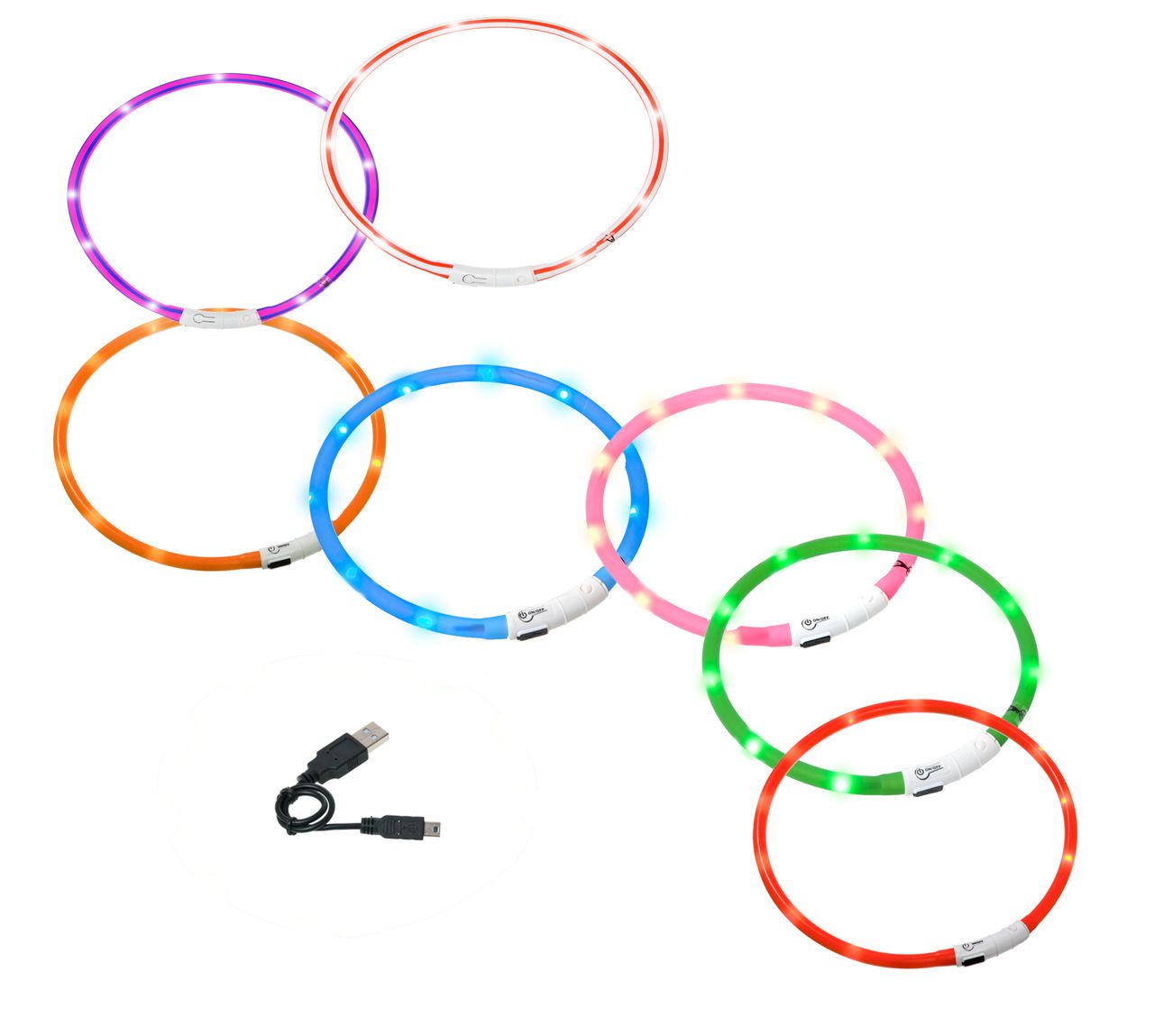 Das Leuchthalsband für Hunde wird mit einem USB-Kabel geliefert und benötigt keine Batterien und kann mit Ladegerät/Powerbank/Laptops/Tablet und Computer aufgeladen werden.